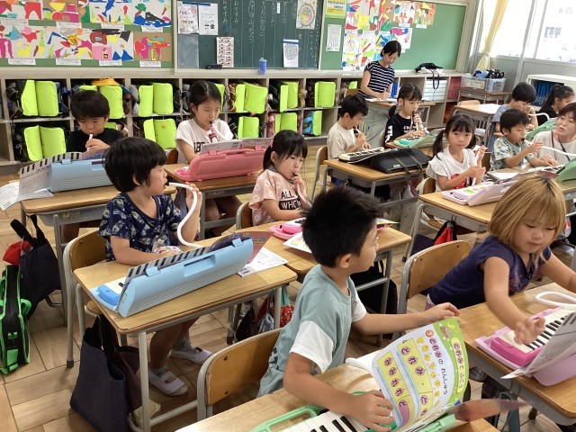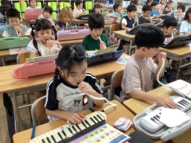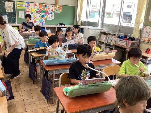 鍵盤ハーモニカの練習が進んでいます。