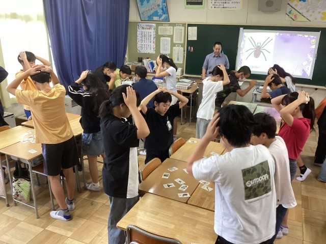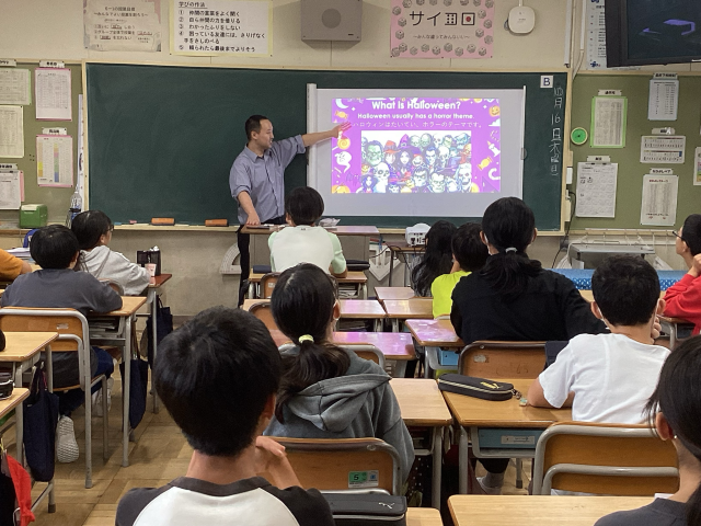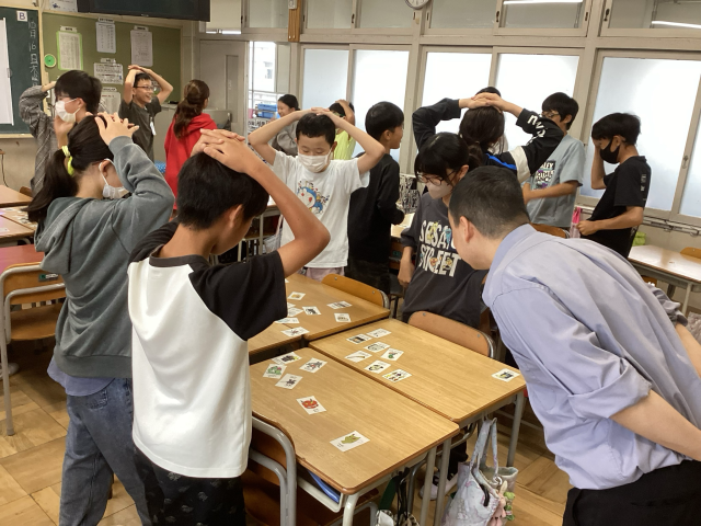 国際交流の時間に「ハロウィンカルタ」を楽しみながら、ハロウィンに関する英単語や表現を学ぶことができました。