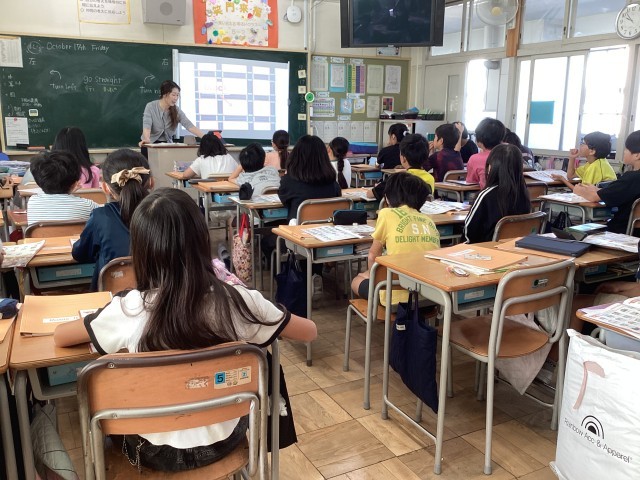道案内の仕方を学びました。少し長い文も繰り返し発音することができました。