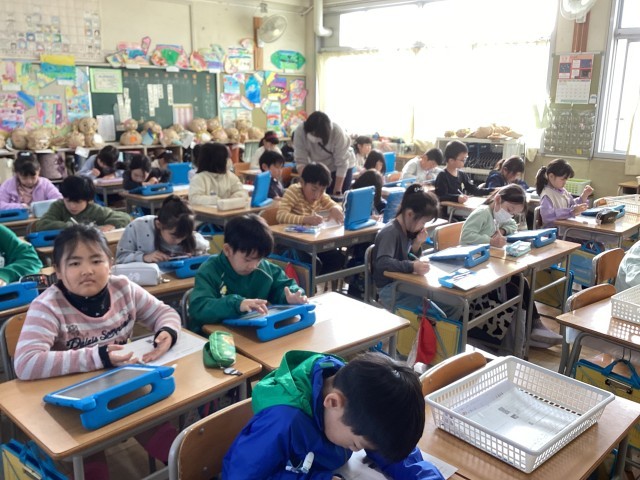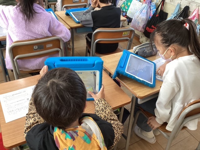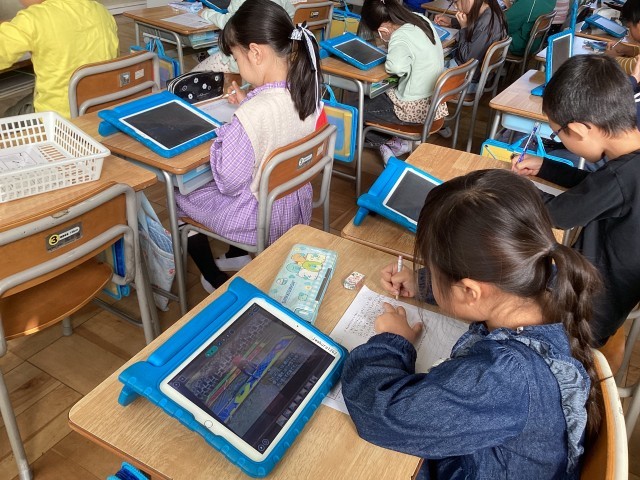 来週、まち探検で訪問する旗屋さんについて学習しています。