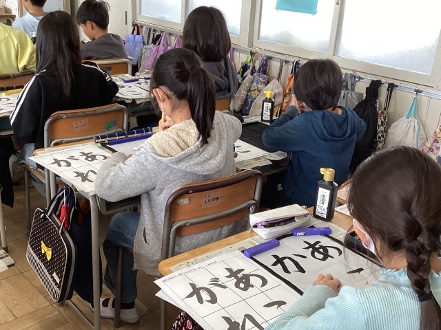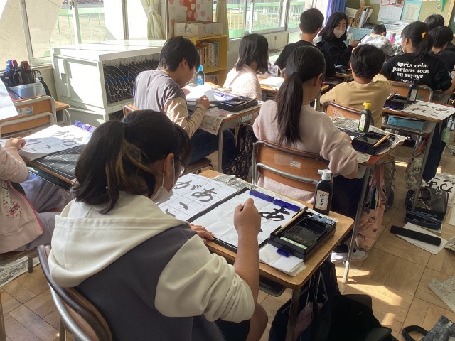 穂先の動きと線と線のつながりに気をつけて、手本を見て丁寧に書きました。