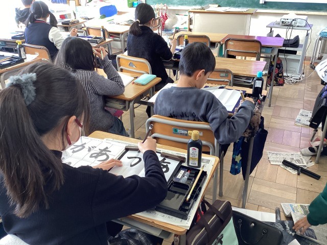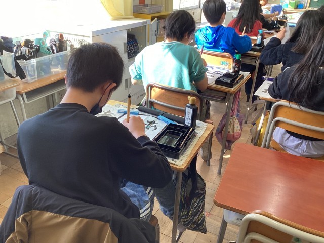「あこがれ」を書きました。筆使いに気をつけながら集中して書きました。