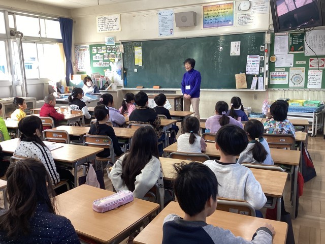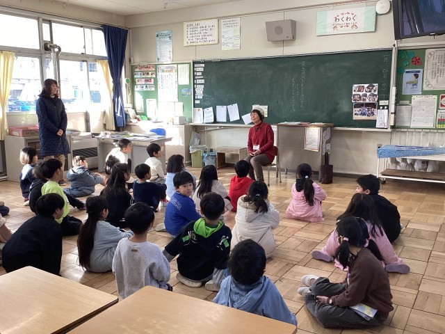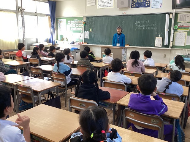 今日はお豆の会の方に来ていただきました。お話を聞いて、想像がどんどん膨らんでいく1年生でした。