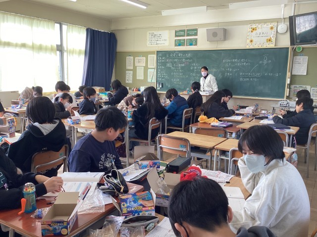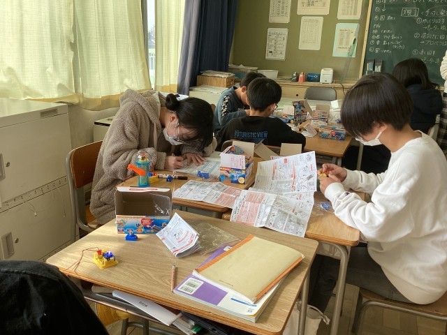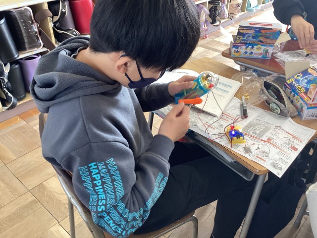 電気の利用の単元で、電気を作って、貯めて、使う実験を、キットを使って学習しています。
