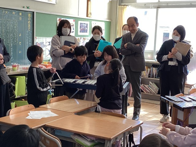 打楽器(鈴、トライアングル、グロッケン、タンバリン)を使って、私たちの星空の音楽を表現しました。