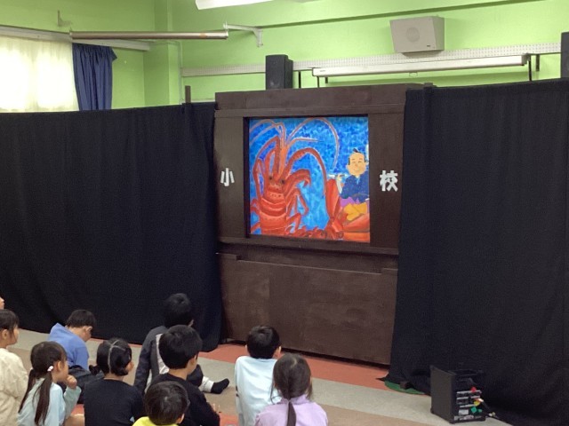 総会の間、スマイルのみなさんが、待っている1・2年生のために大型紙芝居を上演してくださいました