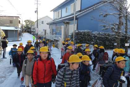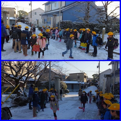 とても寒い日になりましたが、元気いっぱい、今日もあいさつ運動を行っていました。担当クラスは、5年2組と3年2組でした。