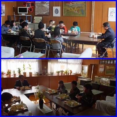 校長先生との会食 公開日 2016/02/04 更新日 2016/02/04 6年生 ○ 2月4日(木) 第5回目の6年生と校長先生との会食会が、校長室で行われました。本日は、3組の9名との会食でした。「…だから、…になりたい。」と将来の夢をしっかり持っている子がたくさんいました。夢に向かって努力してほしいと思います。 中には、小学校の思い出は「給食がおいしかったことです。」と言う子もいました。給食を作ってくださっている方々にお伝えし、お礼を言いたいと思います。 いいね(0)