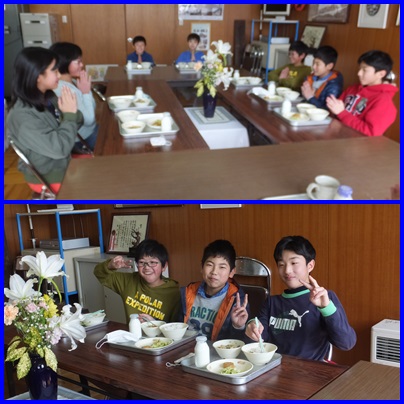 第6回目の6年生と校長先生との会食会が、校長室で行われました。本日は、2組の7名との会食でした。得意なことを聞いたところ、手芸、竹馬、すぐ寝ることができること、野球、跳び箱、歌を歌うこと、ゲームでした。得意なことをいかして、中学校で部活動を決めようと考えている子が、何人かいました。