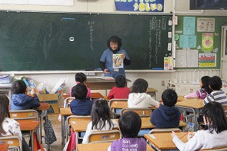 今朝は1・2年生でおはよう読書がありました。スマイルの皆さんに、1年生は、絵本の読み聞かせ、2年生は、本なしで童話や昔話を語るストーリーテリングという手法でお話していただきました。
