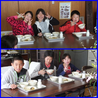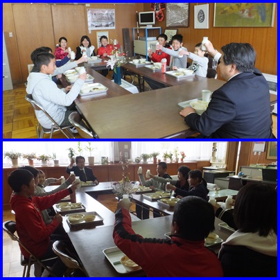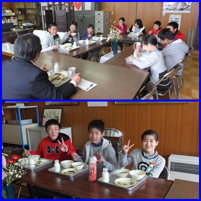 校長先生との会食会 公開日 2016/02/17 更新日 2016/02/17 6年生 ○ 2月17日(水) 第10回目の6年生と校長先生との会食会が、校長室で行われました。本日は、3組の9名との会食でした。小学校の思い出が、修学旅行や運動会と答える児童が多い中、北っ子まつり、大縄大会、遠足(リトルワールド)と答えている児童もいました。 いいね(0)