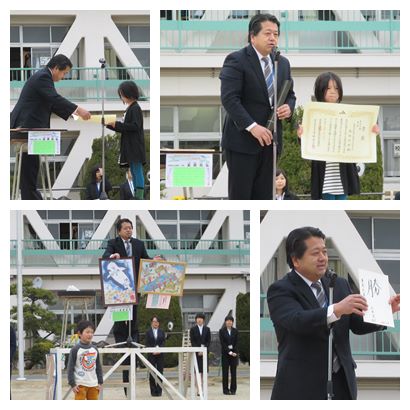 今朝の朝会では、はじめに第59回JA共済全国小・中学生書道コンクール 条幅の部で優秀な成果を収めた児童の表彰を行いました。また、教育長室に飾られる1年生の絵画の紹介もありました。校長先生からは東京大学野球部で活躍している山本投手の紹介があり、夢に向かって努力することの大切さについてお話がありました。