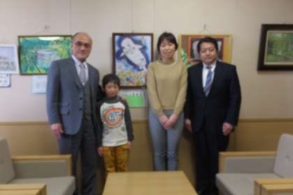 教育長室の名画 公開日 2016/02/22 更新日 2016/02/22 1年生 ○ 2月22日(月) 1年生の児童の作品が、市役所の教育長室に掲示されています。本日の昼の休み時間、校長先生と一緒に、教育長室まで絵をもっていきました。教育長先生から「くじら雲に乗って、宇宙を見に行った様子が、立体的にうまく表現されている。」とほめていただきました。 いいね(0)