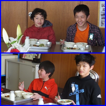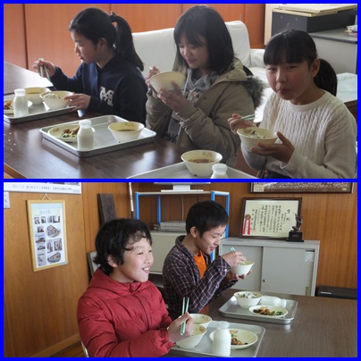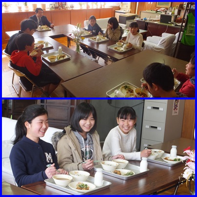 第12回目の6年生と校長先生との会食会が、校長室で行われました。本日は、3組の7名との会食でした。将来の夢として、7名がそれぞれ画家、整形外科医、トリマー、プログラマー、バスケット選手、薬剤師、大工又はスポーツ選手と答えていました。夢に向かって大きくはばたいてほしいと思います。