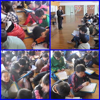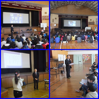 卒業を間近に控えた6年生を対象に、佐藤一斎氏の「言志四録」から生き方を考える会を開催しました。アニメ等を見て、佐藤一斎氏について学習した後、佐藤一斎顕彰会会長の鈴木先生から、具体的に「言志四録」の中の言葉を紹介していただいて、学習を深めました。最後に、佐藤一斎氏が「言志四録」の中で言いたかったこととして、「今この世に生きている一人一人にしなければいけない仕事が与えられている。だから、⑴一人一人の可能性を信じよう。⑵人間らしく生きる努力をしよう。⑶みんなが幸せに生きられる方法を考えよう。」と、教えていただきました。教えていただいたことを子どもたちが心の中にしっかりもって、大きくはばたいていってほしいと思います。