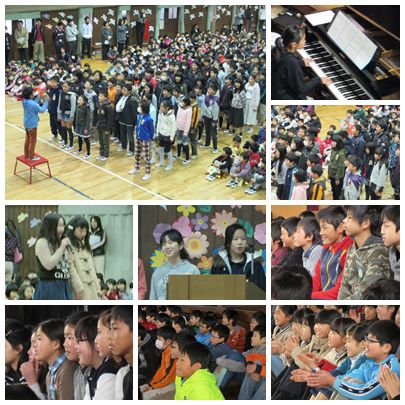 6年生を送る会 公開日 2016/03/03 更新日 2016/03/03 学校行事 ○ 3月3日(木) 6年生を送る会を行いました。開会のことばに続き、6年生から5年生にさまざまな活動が引き継がれました。また、1年生から5年生がそれぞれに歌と言葉で感謝の気持ちを伝えました。先生からのはなむけの群読や、6年間の思い出の映像などがあり、思いのこもった温かな会となりました。 いいね(0)