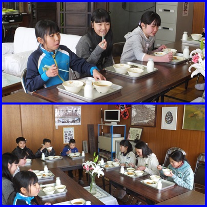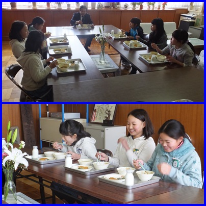 校長先生との会食会(6年生) 公開日 2016/03/03 更新日 2016/03/03 6年生 ○ 3月2日(水) 15回目の6年生と校長先生との会食会が、校長室で行われました。本日は、2組の9名との会食でした。得意なこと聞かれた時に、習字、絵を描くこと、ゲーム、歌を歌うこと、バレーボール等と答えていました。中には、友だちづくり、話すことと答える児童もいました。中学校でも、たくさんコミュニケーションをとって、たくさんの友だちをつくってほしいと思います。 いいね(0)
