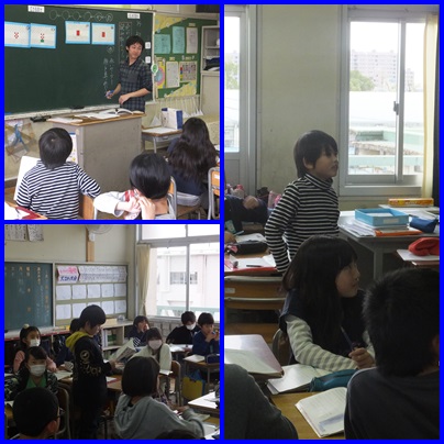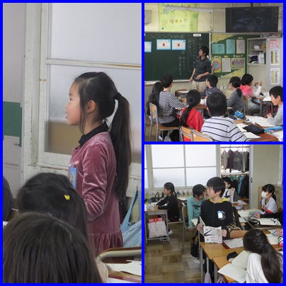 4年生の国語「初雪のふる雪」の授業の様子です。「色のイメージから物語を読み取ろう」という課題で、色イメージ図を物語の順に並べ替える活動に取り組みました。「赤色は、女の子が着ているセーターの色だから…」「白色は、ウサギの色を表している。…」などとグループで意見を出し合い、順番はどうなっているかを考えました。