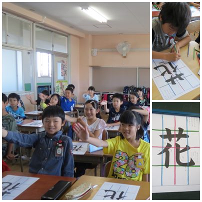 4年 書写「花」のポイント 公開日 2016/05/12 更新日 2016/05/12 4年生 ○ 5月12日(木) 点画の位置がわかりやすいように、お手本の罫線に色をつけました。とめ・はね・はらいのポイントについて、手を使って確認しました。 いいね(0)