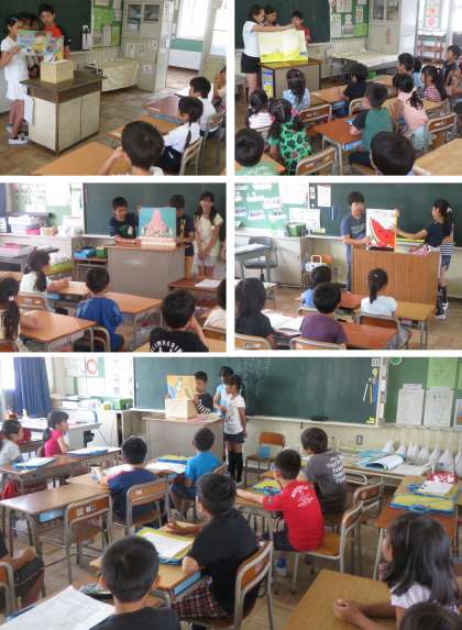 図書委員会では読書週間の活動の一つとして、低学年のクラスで絵本や紙芝居の読み聞かせを行っています。先週は1年生2年生の教室で、今日は1年生と3年生の教室で行いました。図書ボランティアの方の読み聞かせとはまた味わいも異なるようで、子どもたちは目を輝かせてお話に聞き入っていました。