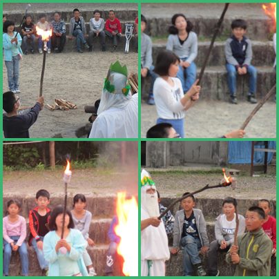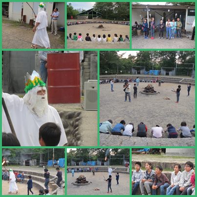 キャンプファイヤーハイライト2 公開日 2016/05/28 更新日 2016/05/28 5年生 ○ 5月27日(金) 火の神から6つの火をいただき、いよいよファイヤーのスタートです。スタンツや各学級からの出し物で大盛り上がり!応援に参加した先生たちも一緒に楽しみました。 いいね(0)