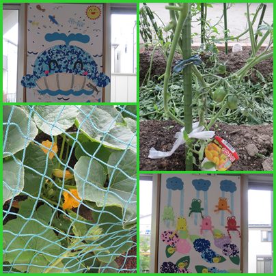 6・7組【初夏の貼り絵とトマトとカボチャの成長ぶり】