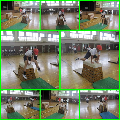 5年3組は、体育の授業に取り組んでいました。手のつくところに気をつけて、とび箱の開脚とびに挑戦していました。勢いよくとべていました。