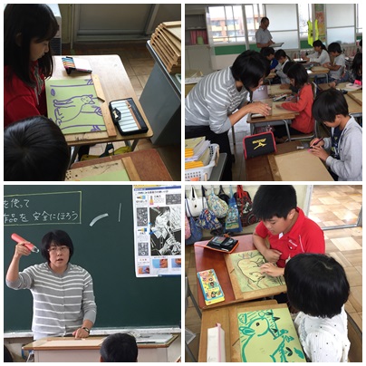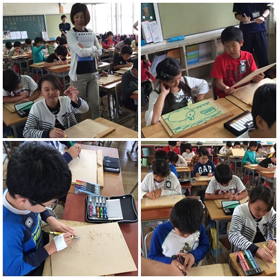 今月に入り、4年生の図工の学習では、自分の選んだ動物のイメージを木版画に表していきます。今日は、彫刻刀の使い方について初めて勉強しました。試し彫りの時間に「彫刻刀は両手で持ち、手は絶対に前に出さない」など、先生から教わった注意ポイントをしっかりと意識し、一人一人が落ち着いて安全に彫ることができました。