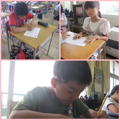 5年生 自信をもって計算しています 公開日 2017/10/12 更新日 2017/10/12 5年生 ○10月12日(木) 5年1組は、漢字のテストに取り組んでいました。はねやはらいに気を付けて、一生懸命臨んでいました。 5年2組は、算数の授業に取り組んでいました。すっかり分数の計算にも慣れたようで、たくさん練習問題に取り組む姿が立派でした。 いいね(0)