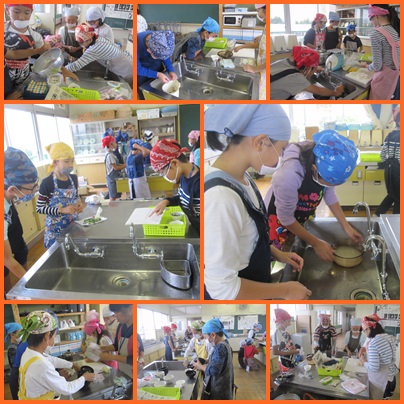 5年1組は、家庭科の調理実習に挑戦していました。手際よく野菜や豆腐を切る姿が見られました。グループで相談しながら、一生懸命調理をしていました。