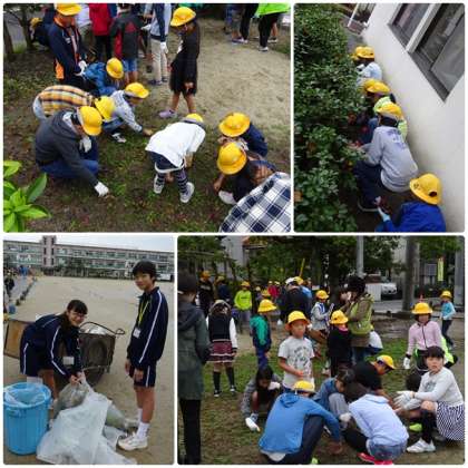 クリーン作戦 公開日 2017/10/20 更新日 2017/10/20 学校行事 ○ 10月20日(金) 朝からお天気が心配されましたが、昨日延期されたクリーン作戦を本日行いました。 いつも使わせていただいている通学班の集合場所を中心に、ゴミや落ち葉を拾いました。6年生が率先して声をかけたり、ゴミを集めたりして、あっという間に袋がいっぱいになりました。この6年生の姿を見て、下級生が来年がんばれます。縦割りの伝統的な活動です。 いいね(0)