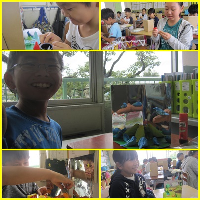 5年4組は、図画工作の授業に取り組んでいました。紙粘土を使って、工夫を凝らした作品を楽しく作製していました。