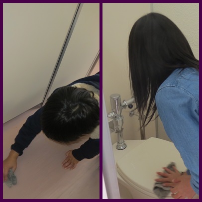 北館のトイレ掃除は、4年生に任されています。北館の最高学年として、下級生のために細かいところまで一生懸命掃除をしています。