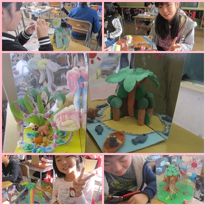 5年1組は、図画工作の授業に取り組んでいました。鏡の反射を何度も確認して、完成を目指していました。