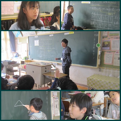 5年2組は、算数の授業に取り組んでいました。面積の求め方を、図を用いて説明していました。友達に理解してもらいたいという気持ちが強く表れていました。