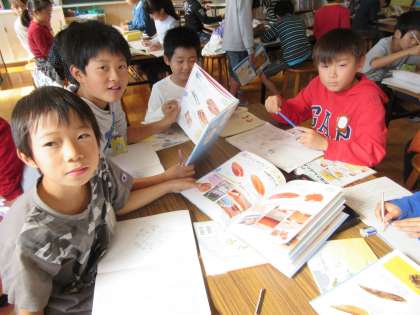 今日は調べ学習室で、すがたをかえて食品になる材料は他に何があるかを調べ、食品の例を集めました。これから例を挙げて説明する文章を書いていきます。