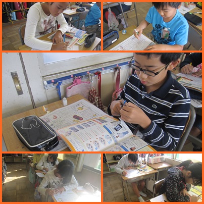 秋の校外学習の新聞をつくっています。自動車の製造過程や設備について、しっかりとまとめていました。もうすっかり自動車博士ですね。