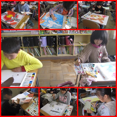 5年生 情景を工夫して 公開日 2017/11/16 更新日 2017/11/16 5年生 ○11月16日(木) 5年3組と4組は、図画工作で読書感想画に取り組んでいました。登場人物の気持ちが表れるように背景の色などを工夫していました。 いいね(0)