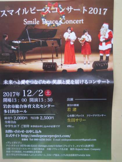 昨年度、本校にも来てくださった「盲目の歌姫」若渚さんと「心を開くヴォイス フリーアナウンサー」の生田サリーさんのコンサートが12月2日(土)に岩倉市総合体育文化センターの多目的ホールで開催されます。