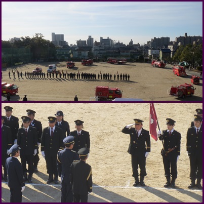平成30年 岩倉市消防出初式 公開日 2018/01/07 更新日 2018/01/07 今日のできごと ○ 1月7日(日) 快晴の中、岩倉市消防出初式が岩倉北小学校の運動場で開催されました。出初式では、人員及び車両報告、視閲、分団行進、市長訓示、表彰、来賓祝辞、謝辞、火の用心三唱、が行われました。凜々しい消防の制服での分団行進や校庭を回る消防車、式の後の一斉放水訓練を見て、日頃の活動への感謝の気持ちをもちました。 いいね(0)