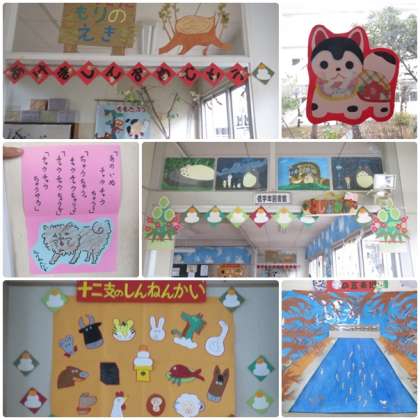 図書館ボランティア掲示グループの「OPEN SESAME」の皆さんが、図書館をお正月の雰囲気いっぱいにしてくださいました。