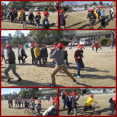長放課や昼放課に、大縄跳びの練習をしています。友達と声をかけ合い、少しでも多く跳べるように頑張っています。