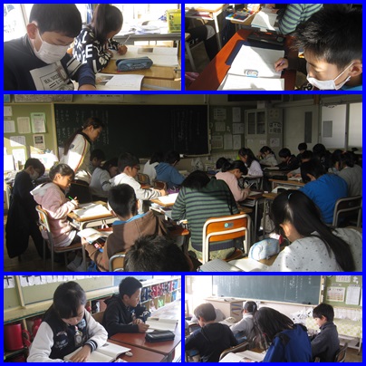 5年2組は、算数の授業に取り組んでいました。割合を、百分率で表す方法を学んでいました。小数点の動かし方に気を付け、練習を繰り返し行っていました。