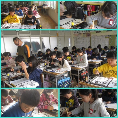 5年3組は、書写の授業に取り組んでいました。ひらがなの丸みを意識し、しなやかな筆遣いで練習をしていました。