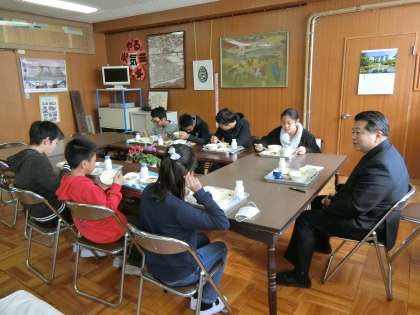 学級ごとに、10名程度の子どもたちが順番に校長室を訪問し、校長先生と小学校の思い出などについてお話をしながら楽しく給食を食べます。