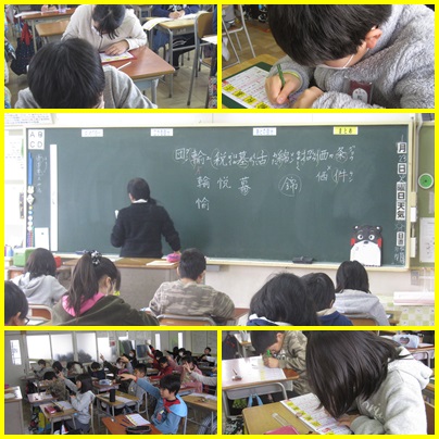 5年4組は、漢字の練習をしていました。どのような意味をもっているかを丁寧に確認しながら、新出漢字を覚えていました。