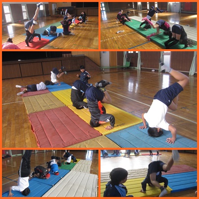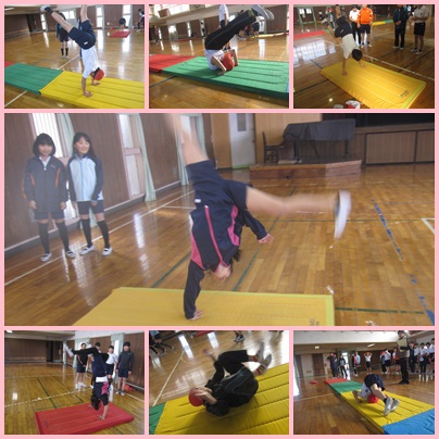 5年3組と4組は、体育の授業に取り組んでいました。技術を高めるために、友達とアドバイスをし合い、練習をしていました。