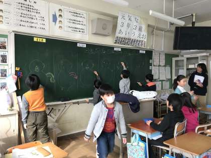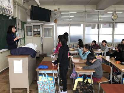 国際理解の授業 公開日 2018/01/29 更新日 2018/01/29 3年生 ○ 1月29日(月) 総合的な学習の時間で国際理解の授業を行いました。体の部位を英語で発音したり、ゲームをしたりしました。どの子も意欲的に英語を使いながら参加しました。 いいね(0)