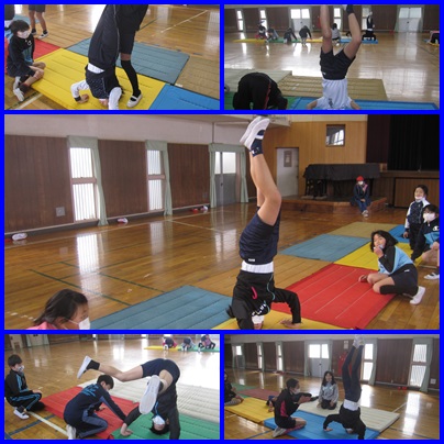 5年生 おでこに集中して 公開日 2018/01/29 更新日 2018/01/29 5年生 ○1月29日(月) 5年3組は、体育の授業に取り組んでいました。三点頭とう立の練習をしていました。おでこと手の位置が三角形になるようにして、練習を繰り返していました。 5年4組は、家庭科の授業に取り組んでいました。ひもの通し方を教えてもらっている様子も見られました。完成も間近のようです! いいね(0)