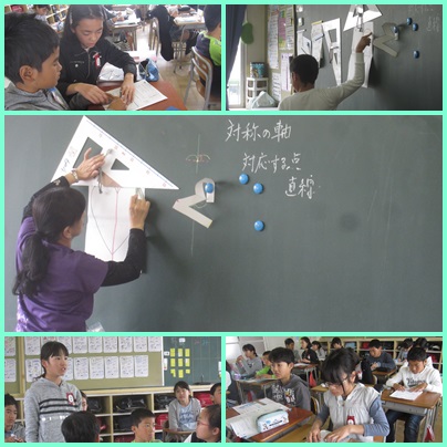 6年2組と4組は、算数の授業に取り組んでいました。対称な図形の性質に着目して作図していました。